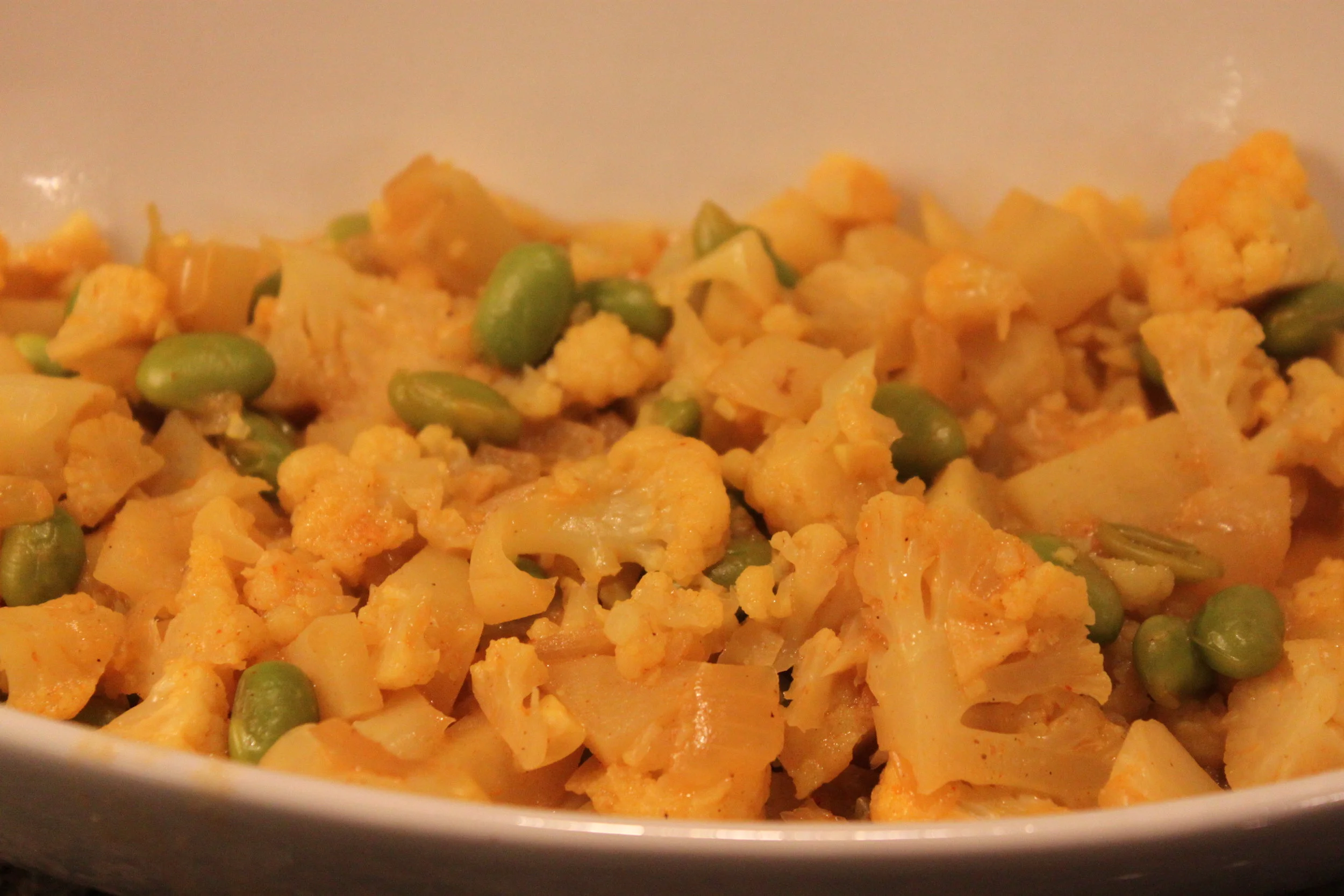 On a cold, winter night, vegetable korma warms the tummy.  This recipe is easy on the budget and calories.  Total time to prep and cook is less than an hour.  Usually on a work night, I try to prepare food under 30 minutes.  If there is extra time in the schedule, consider making this dish.