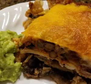 - In a 9x9 casserole dish, add 1/4 cup enchilada sauce and swirl to coat, set aside.