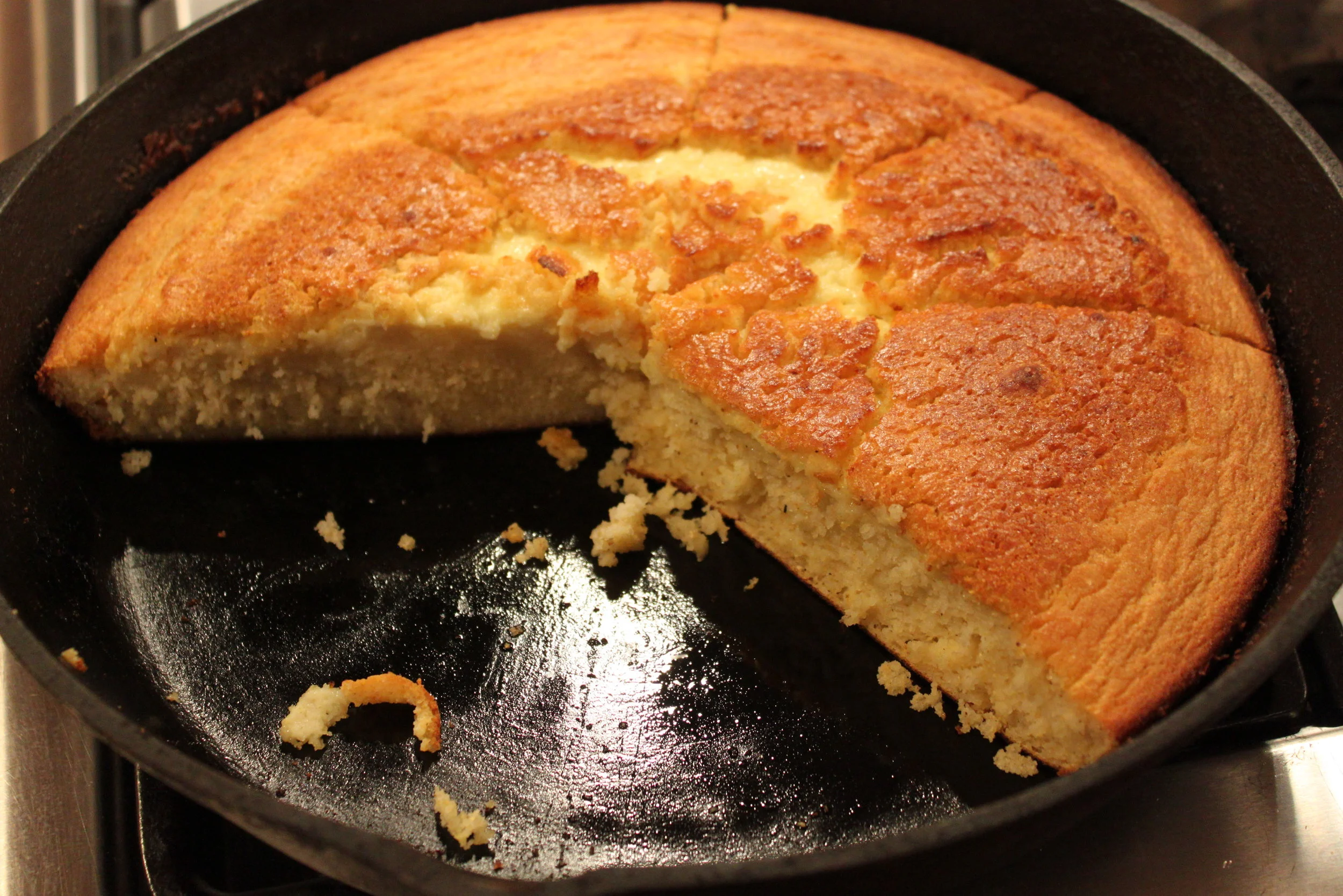 - Grease a 10 inch cast iron skillet or an 8x8 pan.