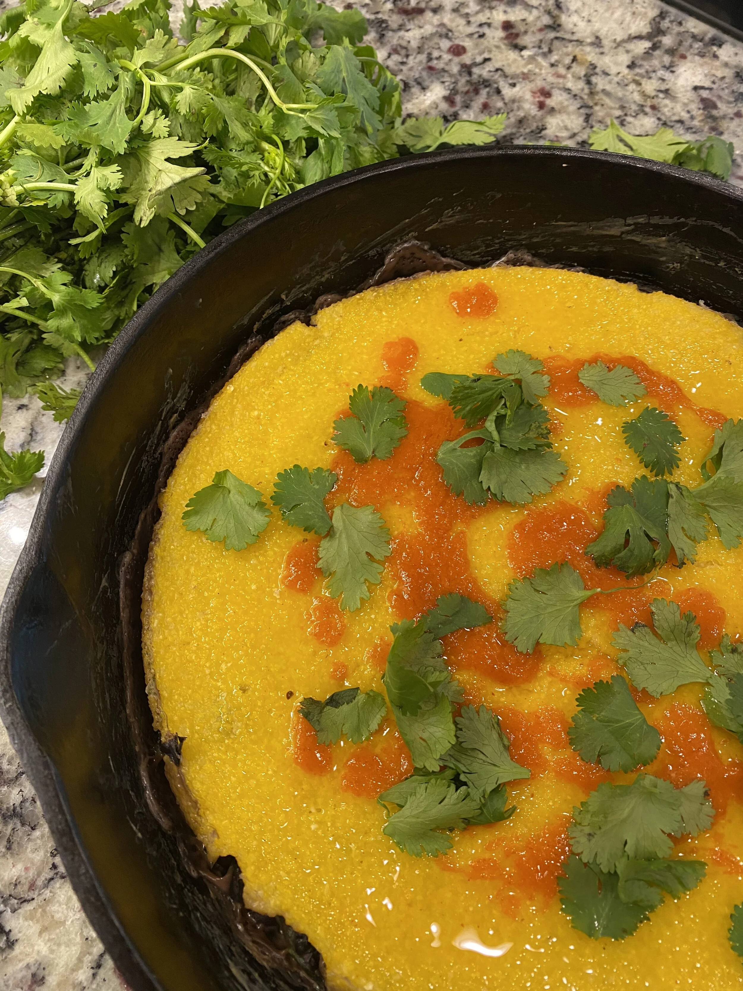 Originally, I used my cast iron skillet with avocado oil. I love using cast iron for the crispy edges it produces, however, the cakes kept sticking. In retrospect, I’ll allow them to “set up” a bit in the refrigerator and use the air fryer.