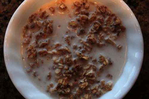 This is a granola I stumbled upon in a cookbook. I really love all the spices here. As a traditional cook, I had to seek out some of the sweeteners this one calls for, but it's worth the trip to the health section of the grocery store. These more natural sugars don't spike the blood glucose levels like more the highly refined sugars do. I have used the hemp seeds as they are easily accessible at our local Costco warehouse. They provide rich protein and fiber to make this a great breakfast choice. One bowl keeps me satisfied until lunch. I typically triple the batch, because it goes quick!